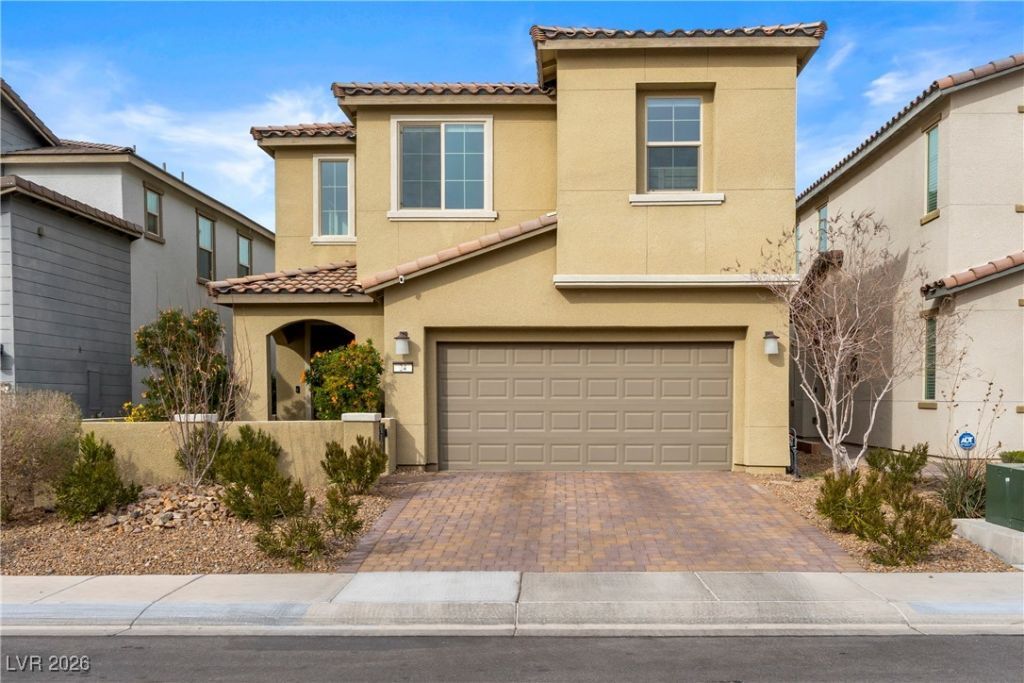 Immaculate, interior designer?owned home in prestigious Lake Las Vegas, tucked away on a quiet cul-de-sac with private courtyard entry. This turnkey, move-in-ready residence showcases refined designer finishes and shows like a model. Porcelain tile floors grace the main level, with upgraded carpet upstairs. The living room features a built-in electric fireplace. The kitchen is designed for both daily living and entertaining, offering quartz countertops, a large island, designer lighting, and a walk-in pantry. A loft with custom built-in bookcase provides flexible living space. The expansive primary suite includes a large custom tiled walk in shower with rainhead and an oversized walk-in closet. Additional features include a tankless water heater, fire sprinklers, overhead garage storage, generous room sizes, and abundant natural light. Enjoy a fully landscaped backyard with mature fruit trees and covered patio. $25,000 Lake Las Vegas Sports Club membership paid and transferable.