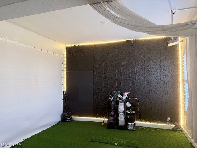 Fully furnished or NON furnished, its up to you! 3-bedroom, 2-bath home. Features formal living room and family room with fireplace, two bedrooms with king beds, and a third bedroom set up as a private office with standing desk and lounge space?ideal for remote work. Enjoy a golf simulator that doubles as a media room (in dining room), plus a private backyard with fire pit and putting green. The garage includes a full gym setup. Additional highlights include high-speed Wi-Fi, smart TVs, and EV charging.