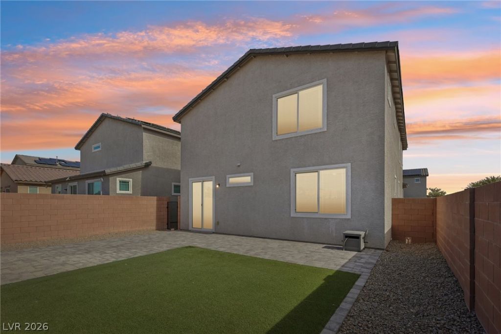 Better than new! Built in 2022 by Beazer Homes, this stunning 2-story in the gorgeous gated community of Rancho Crossings offers 4BR, 3BA & 2,532 sq ft of stylish, modern living. Grand entry w/elegant staircase sets the tone. Spacious Great Room w/ceiling fan & tile thru-out 1st floor. Beautiful open kitchen w/oversized island, granite counters, SS appls & fridge included?perfect for entertaining. Dining area w/slider opens to a fully landscaped backyard w/pavers & synthetic grass for easy outdoor living. Downstairs guest BR w/full bath ideal for visitors, exercise or home office. Upstairs features a large loft, expansive primary suite w/fan & huge walk-in closet. Spa-like bath w/dual sinks, granite counters, separate tub & shower. Beds 3 & 4 w/closets & ceiling fans. Washer & dryer included. HVAC system 3.5 years old. Solar installed 2023 (GoodLeap Loan, $276.40/mo, 25-yr term, $44,336 bal) Avg NV Energy bill $19/mo. Low HOA $55/mo. Close to shopping, hwy access, Nellis or Creech AFB.