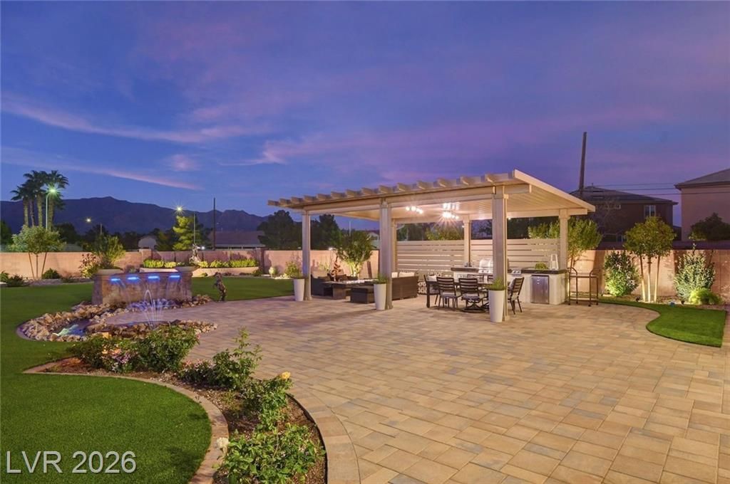 Experience the pinnacle of desert luxury in this meticulously upgraded Toll Brothers estate. Situated on one of the largest lots in the community, this better than new second home radiates sophistication and effortless style. The sprawling single-story layout features 4 generous bedrooms plus a dedicated den, characterized by high-end finishes where no expense was spared! The heart of the home seamlessly transitions to a backyard paradise via expansive stacking doors. This outdoor oasis is a masterclass in entertaining, boasting a custom built-in BBQ, a mesmerizing fire pit, and tranquil waterfalls. Professional landscaping with premium turf is complemented by automated electric shades for year-round comfort. With gated privacy, a community pool, and the rare addition of a gated RV parking area, this is a desert gem that truly has it all!