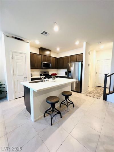Level up your Lifestyle! Strategically situated near anything & everything you could want....Cowabunga Bay water park, Henderson top rated parks, dog park, numerous restaurants, coffee shop, athletic club, healthcare, retail shops, schools. Easy freeway access. This two story townhome features a luxury primary suite complete with balcony, sitting area, large walk-in closet, dual sinks with quartz counters, and storage galore. Open kitchen with smoky brown cabinets, expansive quartz counters, 2 pantries. Home is highly energy efficient boasting very low utility costs all year long! Uniquely situated within the complex to offer ample guest parking. Come experience all that this unique area has to offer!