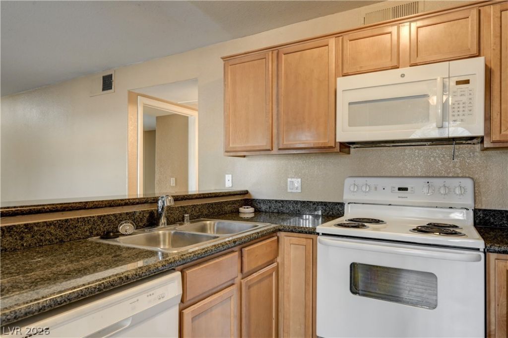 Beautiful Summerlin 2bdrm/2bath condo: Corner unit, assigned covered parking, fresh two tone paint, NEW VINYL FLOORING throughout, granite countertops in kitchen and bathrooms, mirrored closet doors, window seats, community has pool, spa, fitness center and park like landscpaing.