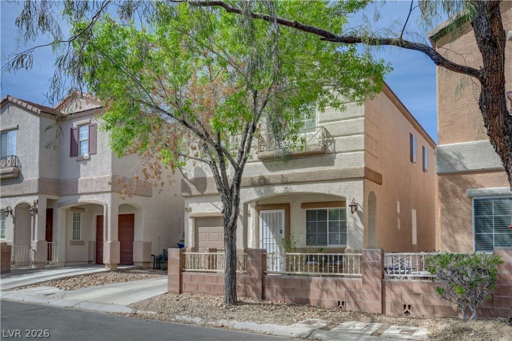 Beautifully maintained two-story home located in the desirable Southwest Las Vegas area.This property features a private, attached one-car garage with direct entry into the home, along with a gated front yard and inviting covered patio perfect for relaxing outdoors.Inside, stylish tile flooring throughout the main living areas and plush carpeting in the upstairs bedrooms.The upstairs bathroom showcases custom wood flooring for an added touch of character. The spacious kitchen offers ample cabinet storage, recessed lighting, a breakfast bar, and enough room to accommodate an island. Additional storage is conveniently located in the dining area.Upstairs includes a built-in desk ideal for a home office or study space.The generously sized primary bedroom features an en-suite bathroom with dual sinks and a sleek glass-enclosed shower.Near shopping, dining, and entertainment, this home is just minutes from Wet'n'Wild, Southern Hills Hospital, and easy access to the 215 freeway.Great Location